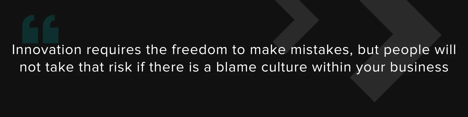 Innovation requires the freedom to make mistakes, but people will not take that risk if there is a blame culture within your business. This kind of environment causes teams to become more conservative, as people choose to take the safe option rather than the best one.